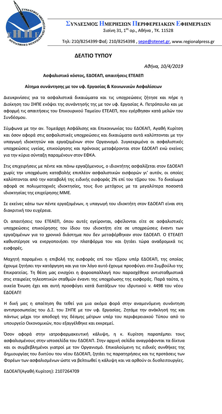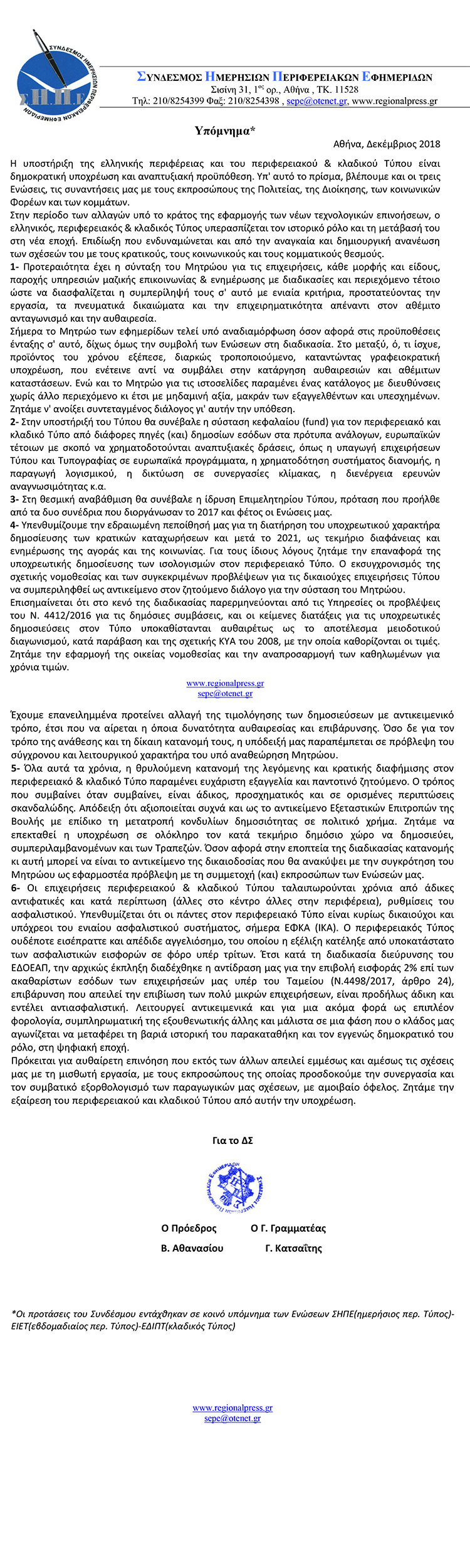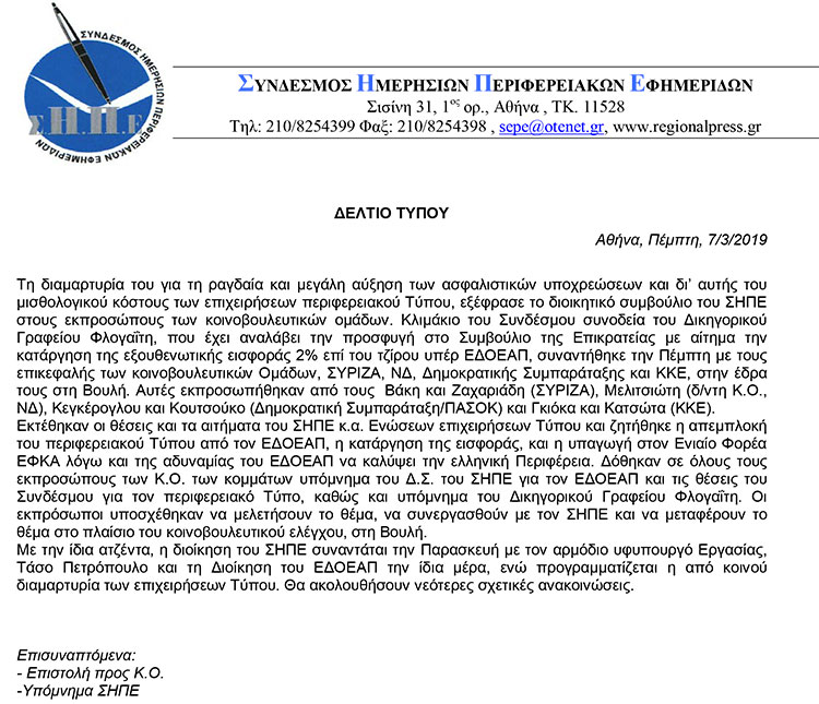 ΔΕΛΤΙΟ ΤΥΠΟΥ